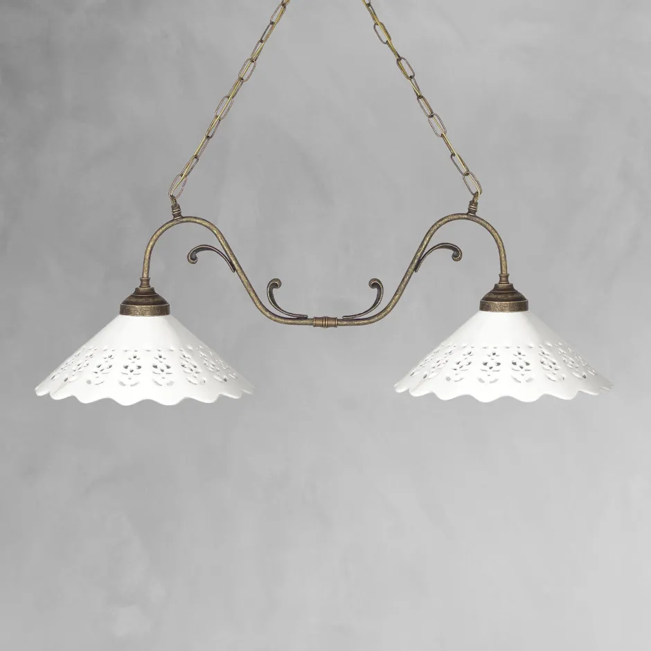 Rustikale Pendelleuchte aus massivem Messing und edler Keramik für Wohnzimmer, Esszimmer und Küche