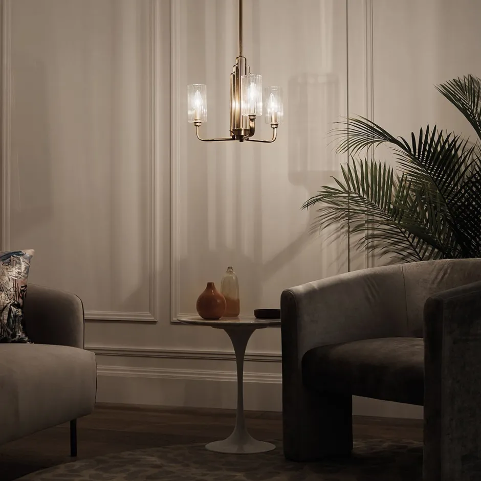Eleganter Kronleuchter für Esszimmer und Wohnzimmer mit kunstvollen Lampenschirmen aus Riffelglas
