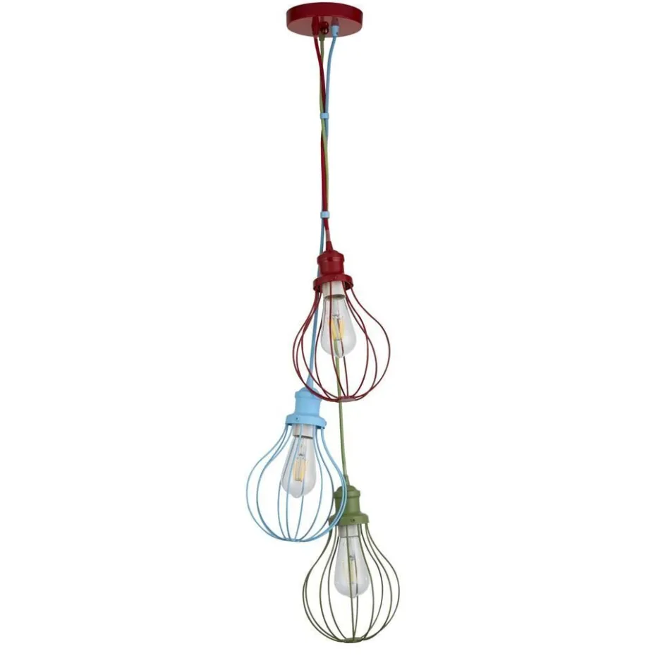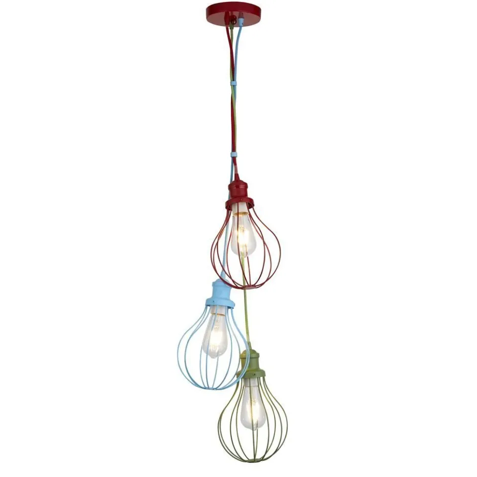 Farbenfrohe Pendelleuchte mit Draht Schirmen für das Kinderzimmer