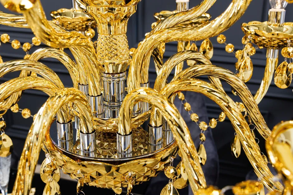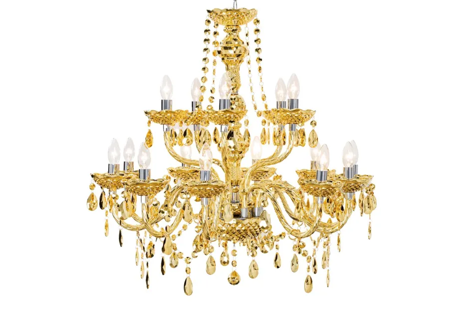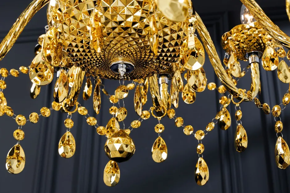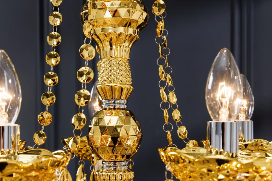 Klassischer Kronleuchter aus Metall und Acryl in Gold