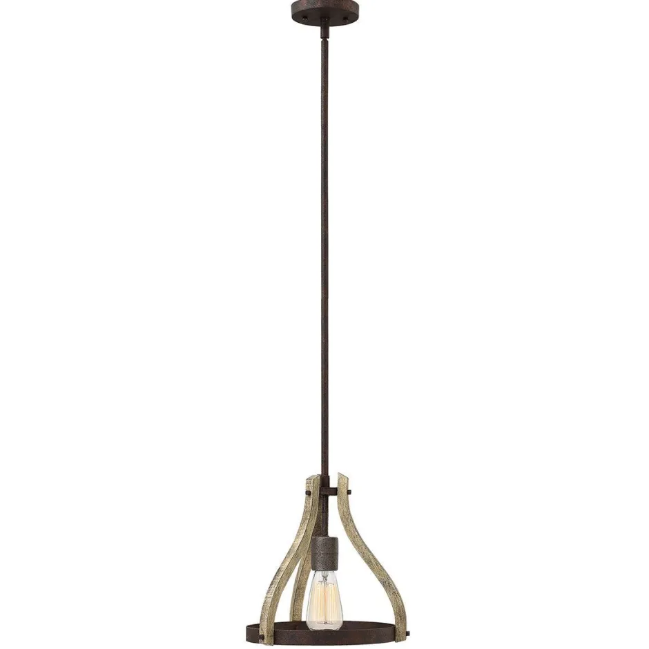 Der spannende Kontrast aus Holz und Metall sowie deren rustikale Oberflächen in Verwittert und Rost erzeugen einen zusätzlichen Vintage Effekt und machen aus der Hängeleuchte einen dekorativen Blickfang in jedem Raum