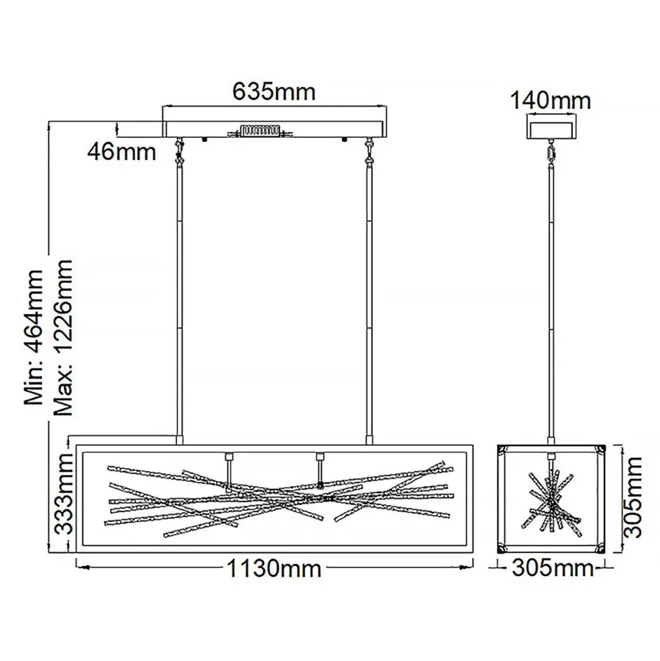 | Maße: | Breite: 305 mm | Hängetiefe: 464-1226 mm | Länge: 1130 mm | Höhe Schirm: 333 mm |