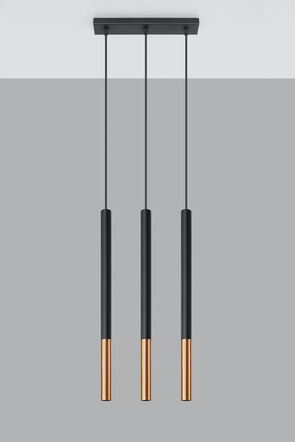 Moderne Pendelleuchte in Schwarz und Kupfer