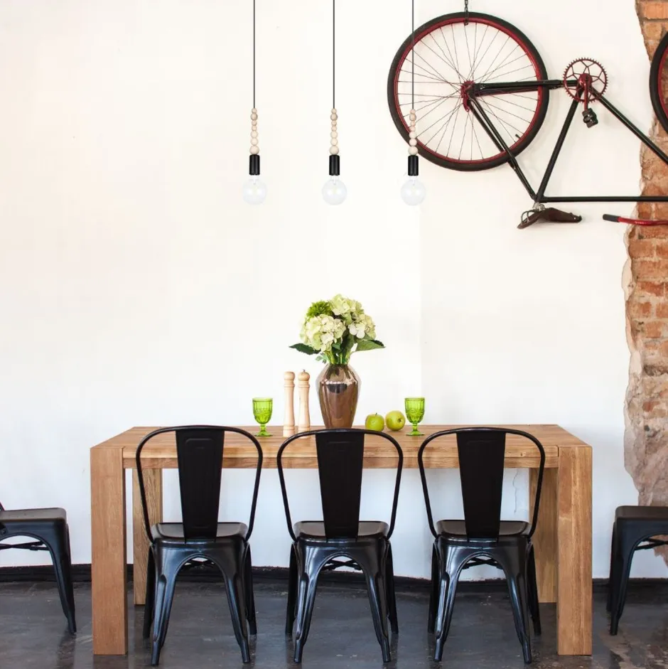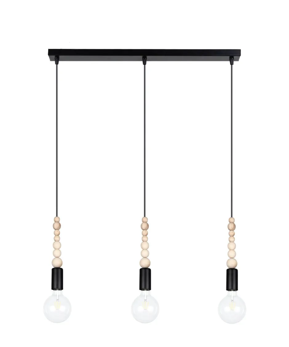 Qualität Made in EU Entdecke die zeitlose Eleganz der Retro Pendelleuchte TRUILI, die mit ihrem einzigartigen Design aus Metall und Holz in Schwarz jeden Raum zum Strahlen bringt. Mit einer Länge von 1000 mm und einer Höhe von 600 mm ist diese Pendelleuchte sowohl für hohe als auch für niedrigere Decken ideal geeignet. Die dekorativen Holzkügelchen und das schirmlose Design setzen die eingesetzten Leuchtmittel perfekt in Szene und machen die TRUILI zu einem echten Highlight in deinem Wohnzimmer oder Esszimmer. Die TRUILI Pendelleuchte ist nicht nur ein Blickfang, sondern auch äußerst funktional. Sie benötigt drei E27 Leuchtmittel mit einer maximalen Leistung von 60W und wird mit 230V betrieben. Dank der IP20–Schutzklasse ist sie für den Innengebrauch konzipiert und sorgt für eine angenehme Lichtstimmung, die deine Räume in ein warmes, einladendes Ambiente taucht. Die selbsttragende Kabelaufhängung ermöglicht eine einfache Installation und sorgt für eine sichere Befestigung. Ob du eine stilvolle Küchenlampe für deinen Esstisch suchst oder eine charmante Hängelampe für dein Wohnzimmer – die TRUILI Pendelleuchte erfüllt all deine Wünsche. Ihr skandinavisches Design spricht sowohl harmoniebewusste als auch designaffine Menschen an, während die hochwertige Verarbeitung „Made in EU“ für Langlebigkeit und Qualität steht. Setze auf die TRUILI Pendelleuchte und verwandle dein Zuhause in einen Ort, der sowohl funktional als auch ästhetisch überzeugt. Lass dich von der Kombination aus Retro-Charme und modernem Flair inspirieren und genieße die vielseitigen Einsatzmöglichkeiten dieser einzigartigen Leuchte.