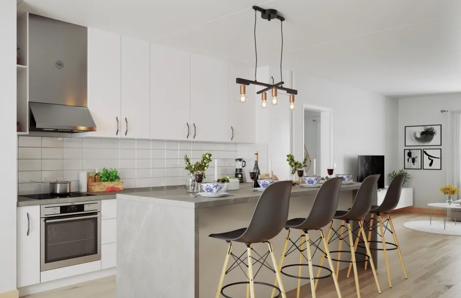 Die Hängelampe ist in der Höhe verstellbar: ideal über Esstisch, Kücheninsel und Tresen