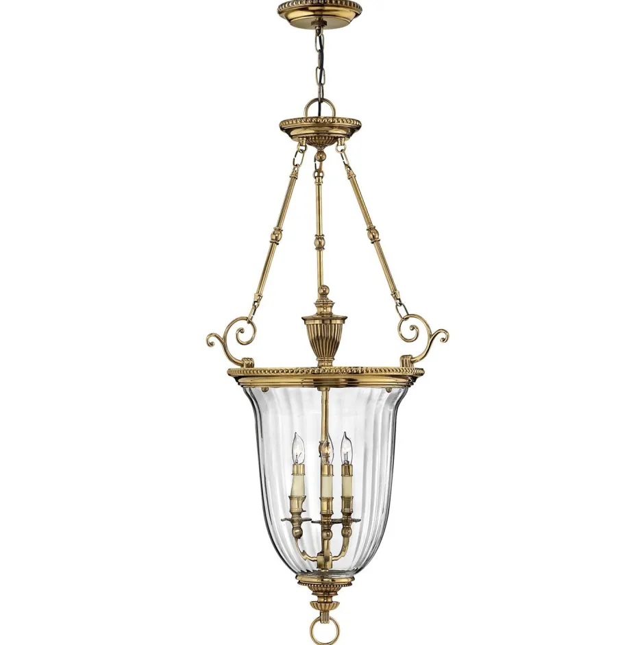 Pompöse Messing Pendelleuchte mit Glas Schirm im Barock Design für Wohnzimmer, Esszimmer und Salon