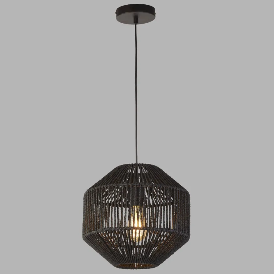 Dekorative Pendelleuchte mit kunstvollem Lampenschirm aus schwarzem Seil