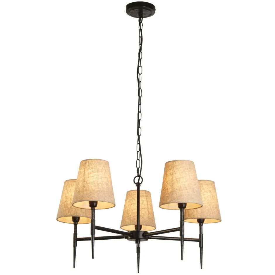 Hängelampen|Wohnzimmerlampen*Searchlight Kronleuchter 5-flammig Ø 66 cm Rustikal E14 Schwarz Creme
