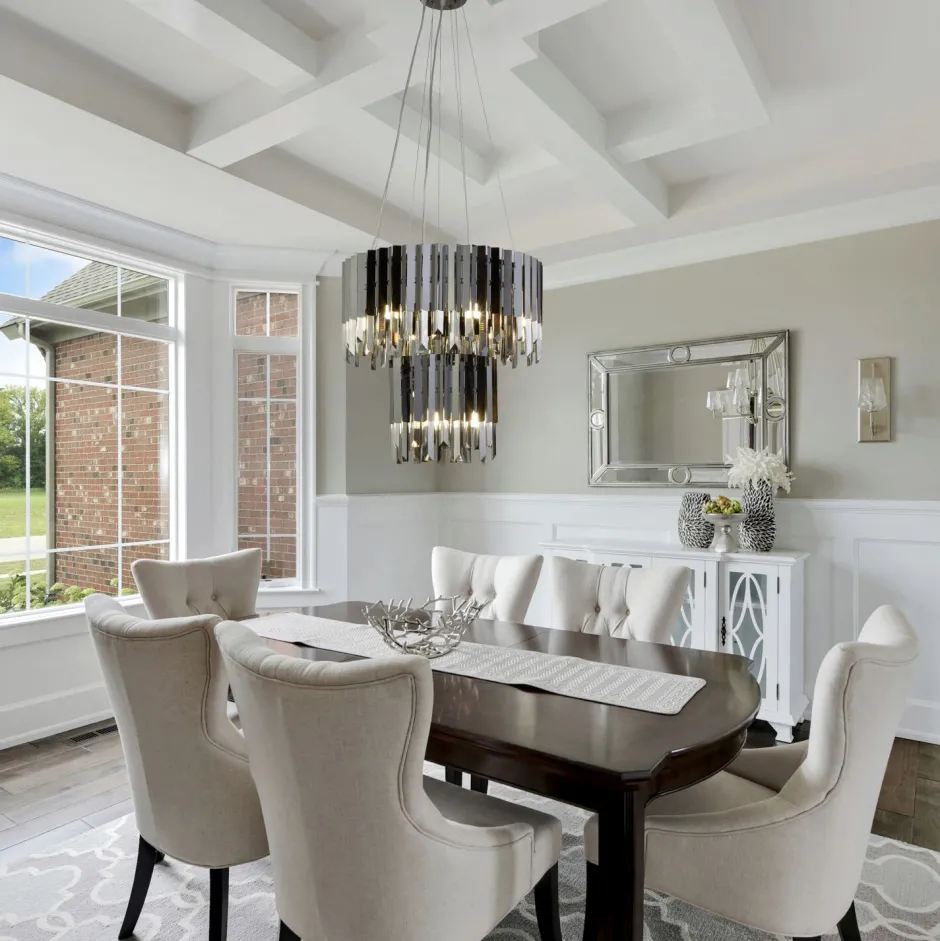 Die außergewöhnliche Farbe und die funkelnden Prismen sorgen für einen eleganten Look und machen aus der Hängeleuchte einen edlen Blickfang in Wohnzimmer und Esszimmer