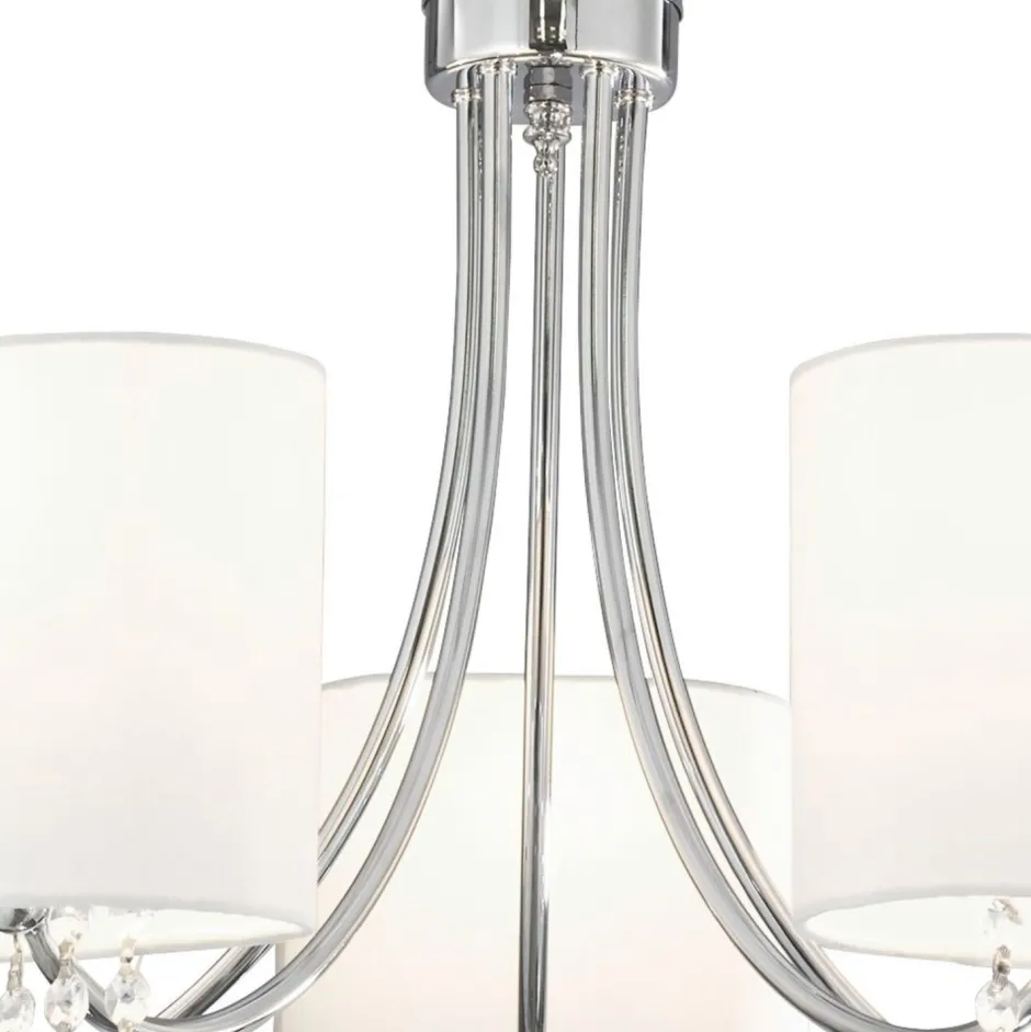 Das Licht wird durch die hellen Stoffschirme blendarm gestreut – perfekt für Wohnzimmer, Schlafzimmer und Esszimmer