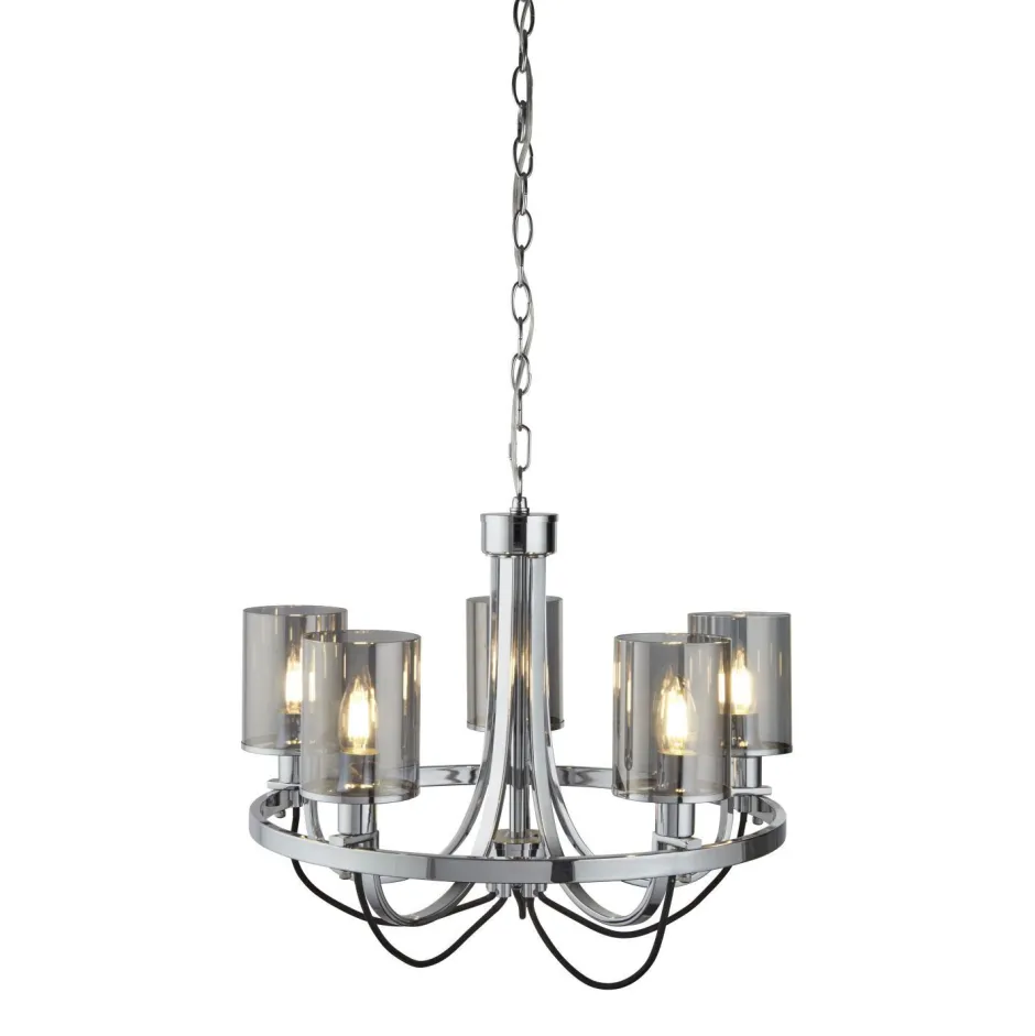 Moderner Kronleuchter mit Glas Schirm in Chrom und Grau