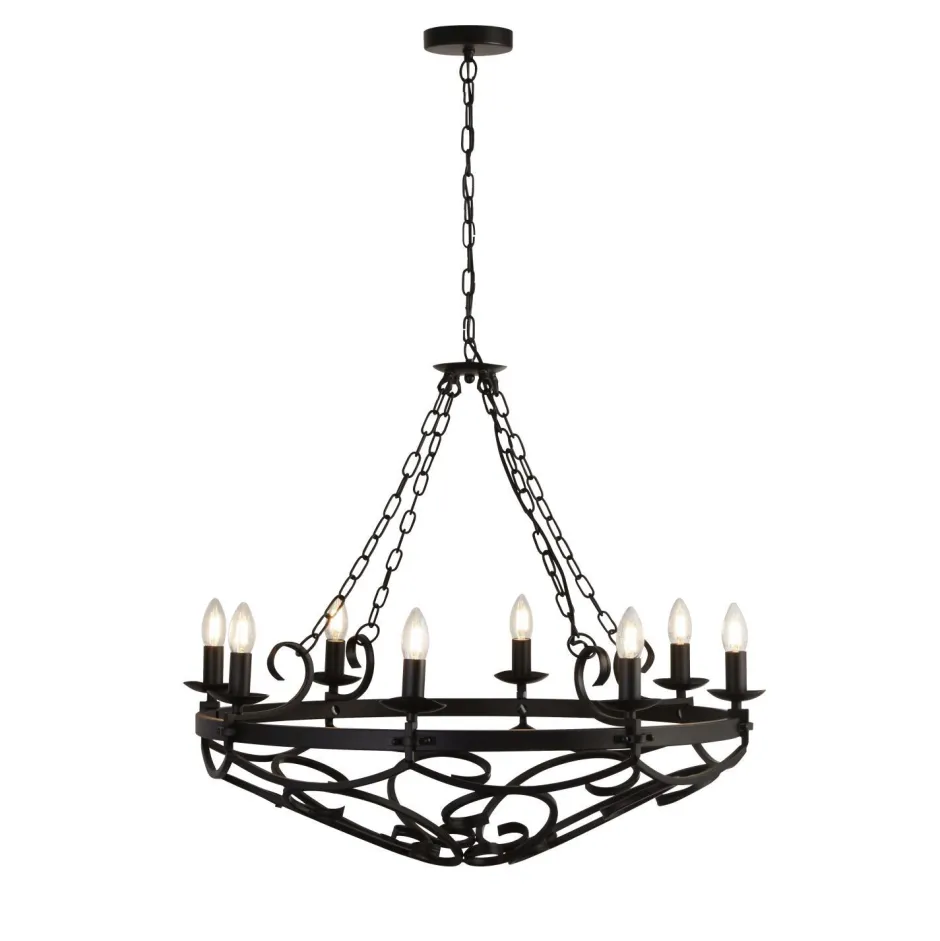 Das mittelalterliche Design erinnert an historische Lüster aus Burgen und Schlössern des Dunklen Zeitalters, was in jedem Raum zu einem dekorativen Blickfang wird