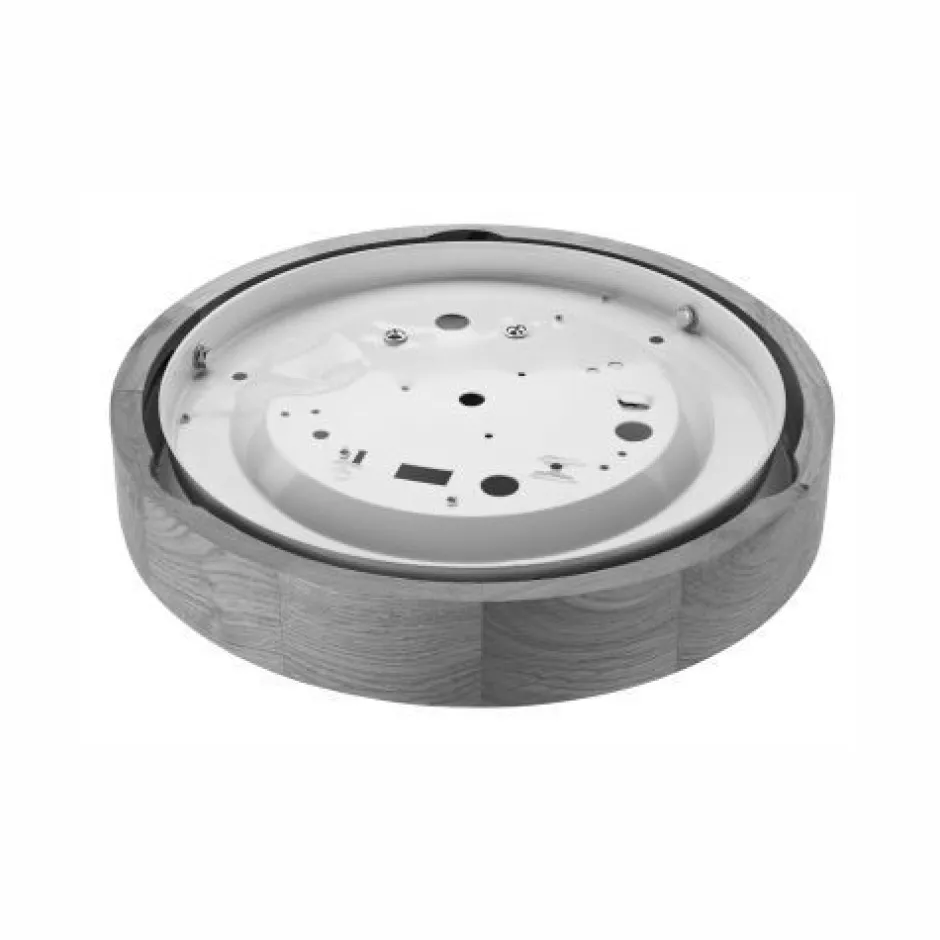 Runde Deckenleuchte aus Holz und Glas