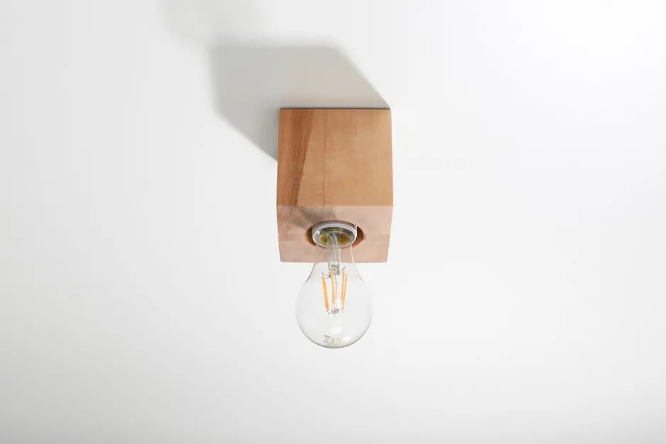 Kompakte Aufbauleuchte aus Holz in Naturfarbe