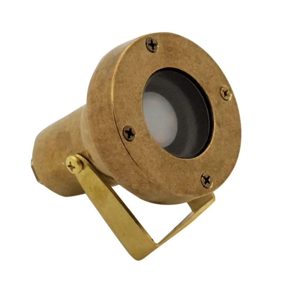 Der Mini Gartenstrahler aus massivem Messing und Glas mit verstellbarem Lampenschirm sorgt für eine zielgerichtete Beleuchtung und erhellt Wege, Pflanzen, Teich und Sitzecke: ideal als Wegeleuchte, Terrassenlampe und Gartenlampe