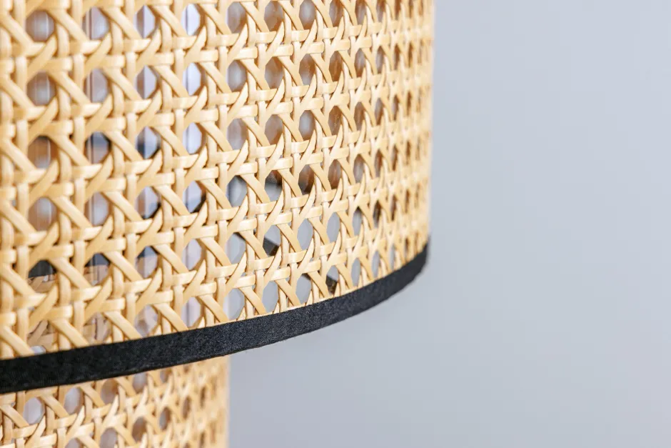 Das Wiener Geflecht des Doppelschirms mit kleinen Öffnungen erzeugt einen einzigartigen Lichteffekt