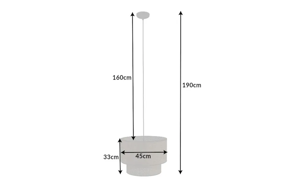 | Maße: | Breite: 450 mm | Hängetiefe: 1500 mm | Länge: 450 mm | Durchmesser: 450 mm | Durchmesser Schirm: 450 mm | Kabellänge: 1200 mm |