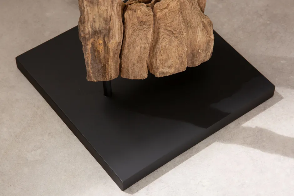 Natürliche Stehleuchte aus Treibholz und Stoff in Schwarz