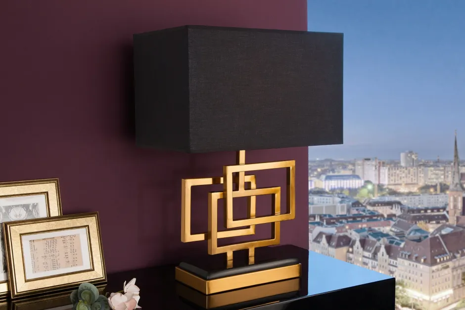 Moderne Tischleuchte aus Polyester und Stoff in Gold und Schwarz