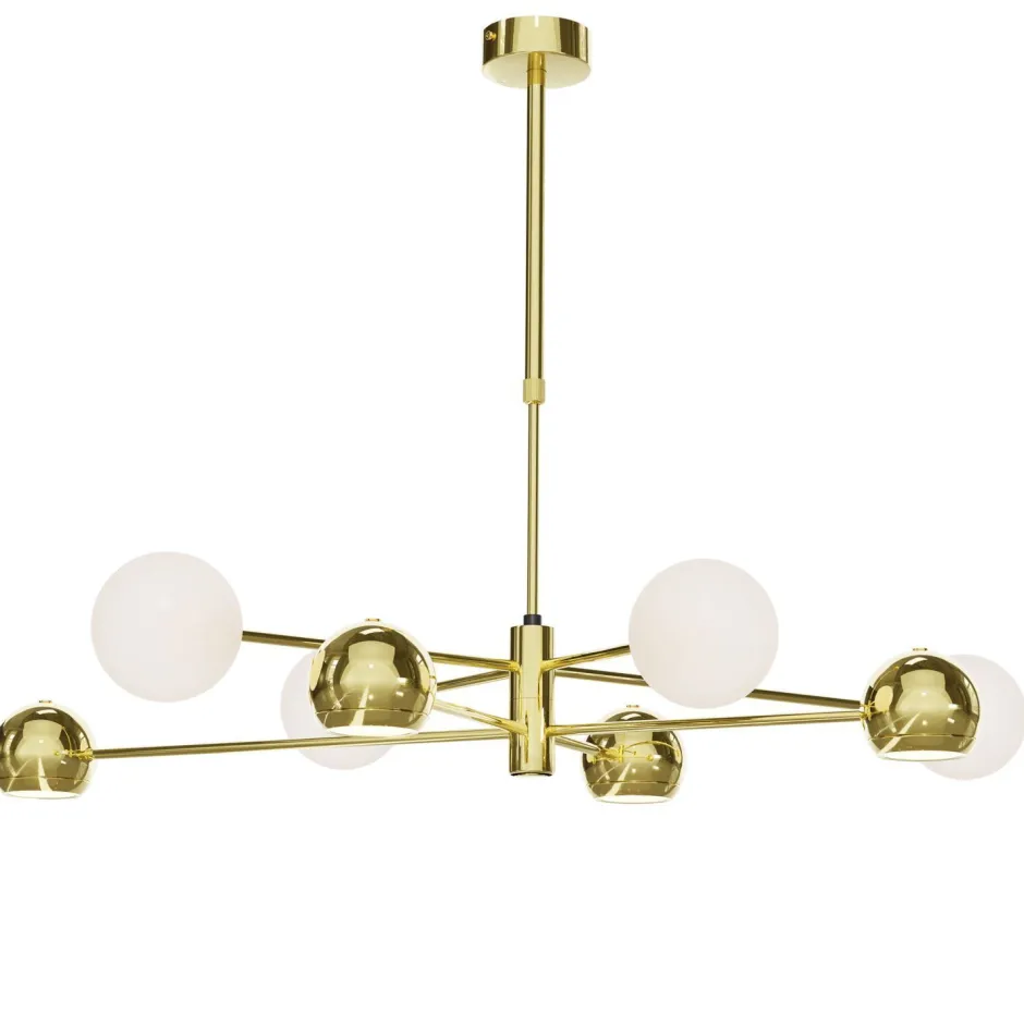 Die Mischung aus goldenen und weißen Schirmen macht die Deckenlampe besonders elegant