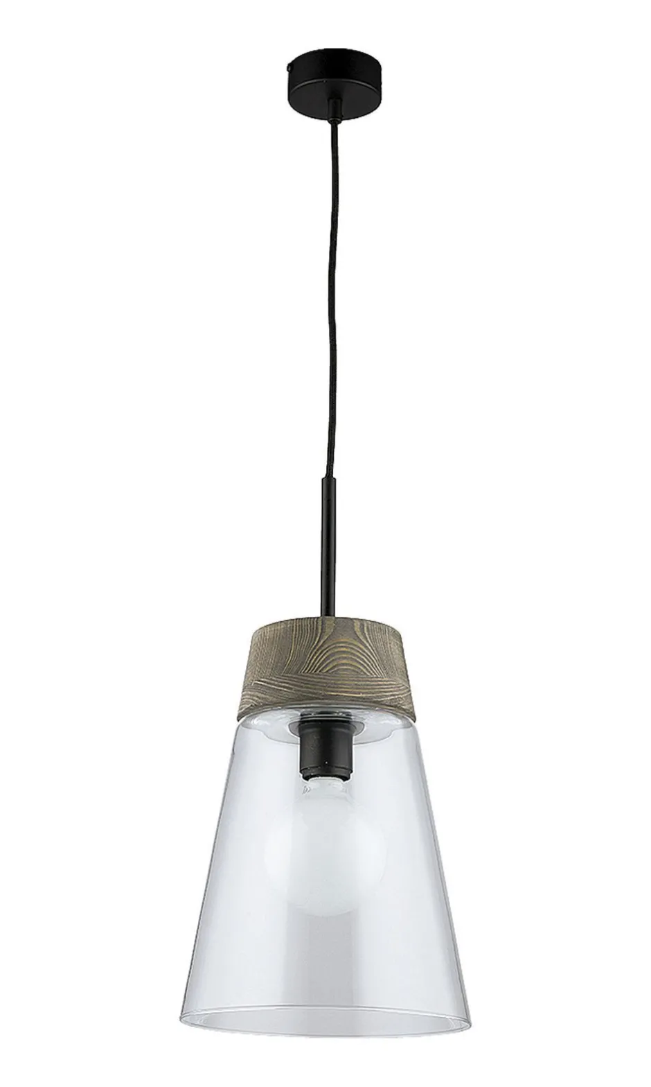 Ein Akzent aus Holz verleiht der Hängeleuchte einen wohnlichen Charakter