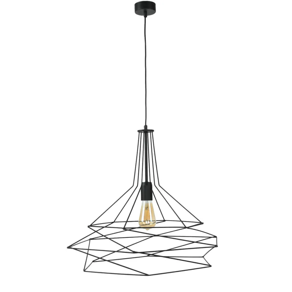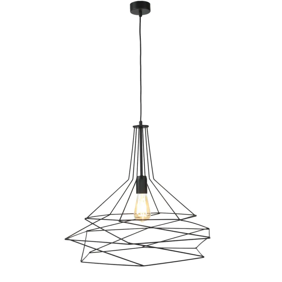 Moderne Pendelleuchte mit Draht Schirm in Schwarz