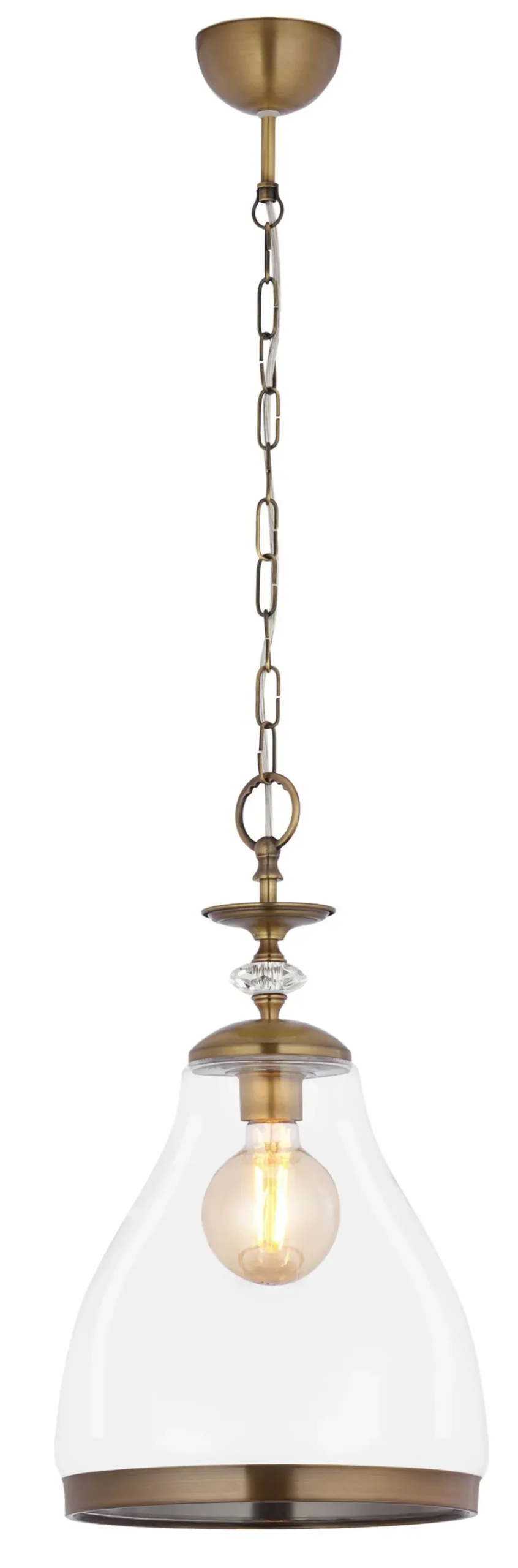 Klassische Pendelleuchte aus Metall und Glas in Messing