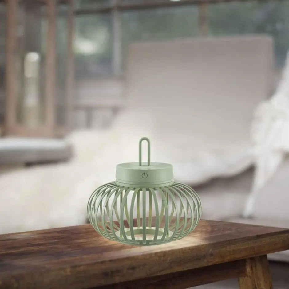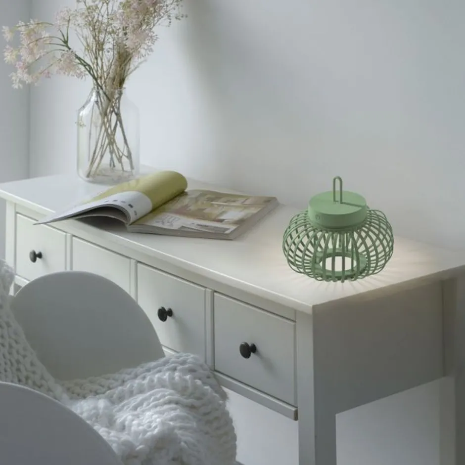 Moderne LED Akku Tischlampe aus Metall in Grün