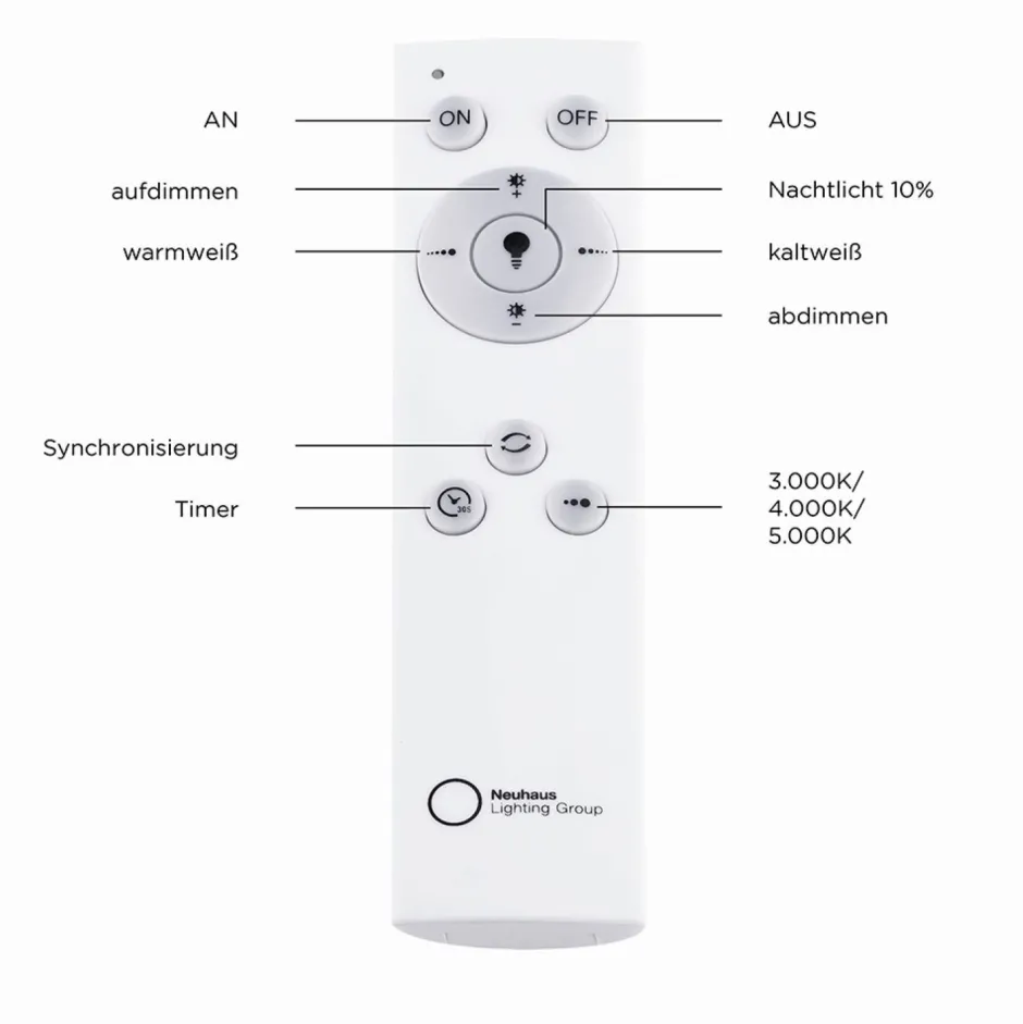 Bedienung über mitgelieferte Fernbedienung (Dimmer und Farbtemperaturwechsel: 2700-5000 K)