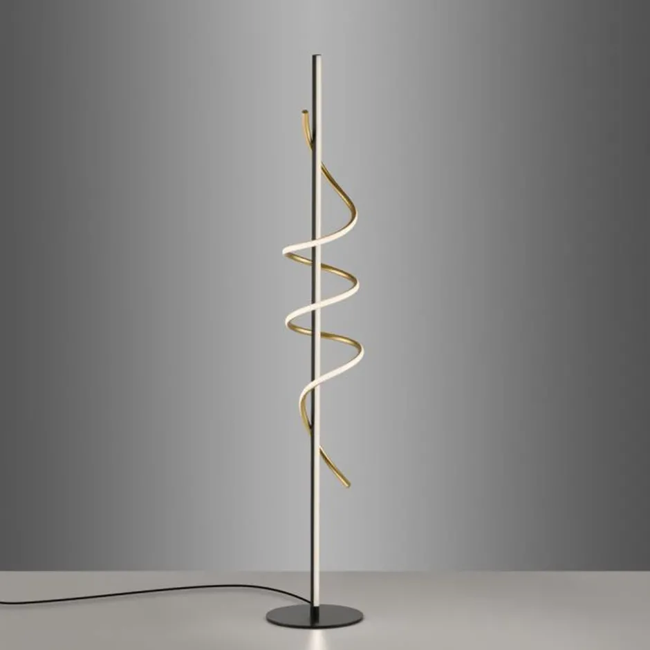 Moderne LED Stehlampe aus Metall in Schwarz und Messing