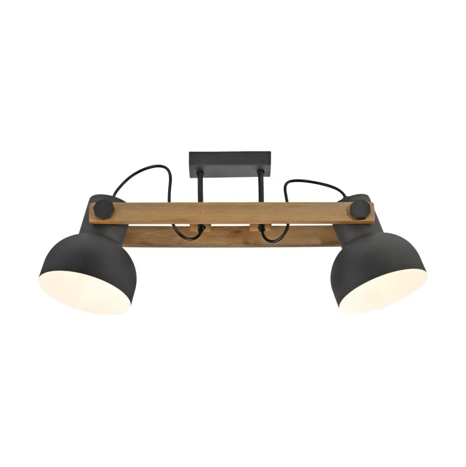 Industrie Deckenspot aus Metall und Holz in Schwarz