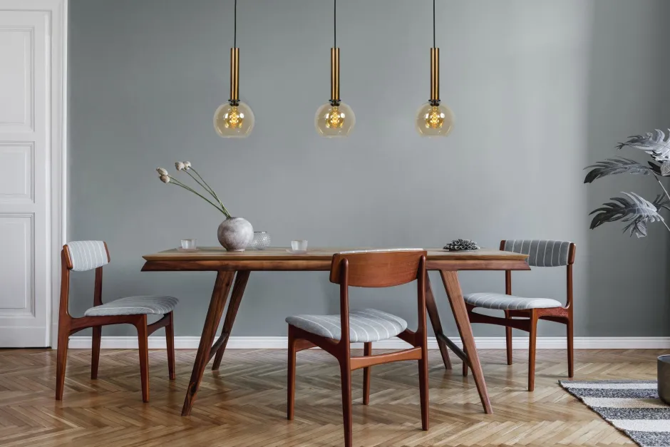 Das leicht gefärbte Glas verleiht der Hängelampe einen edlen Look, der sich mit vielen Einrichtungsstilen kombinieren lässt