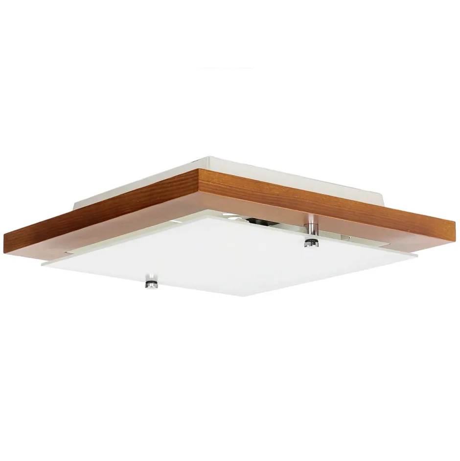 Flache Deckenlampe aus Holz und Glas