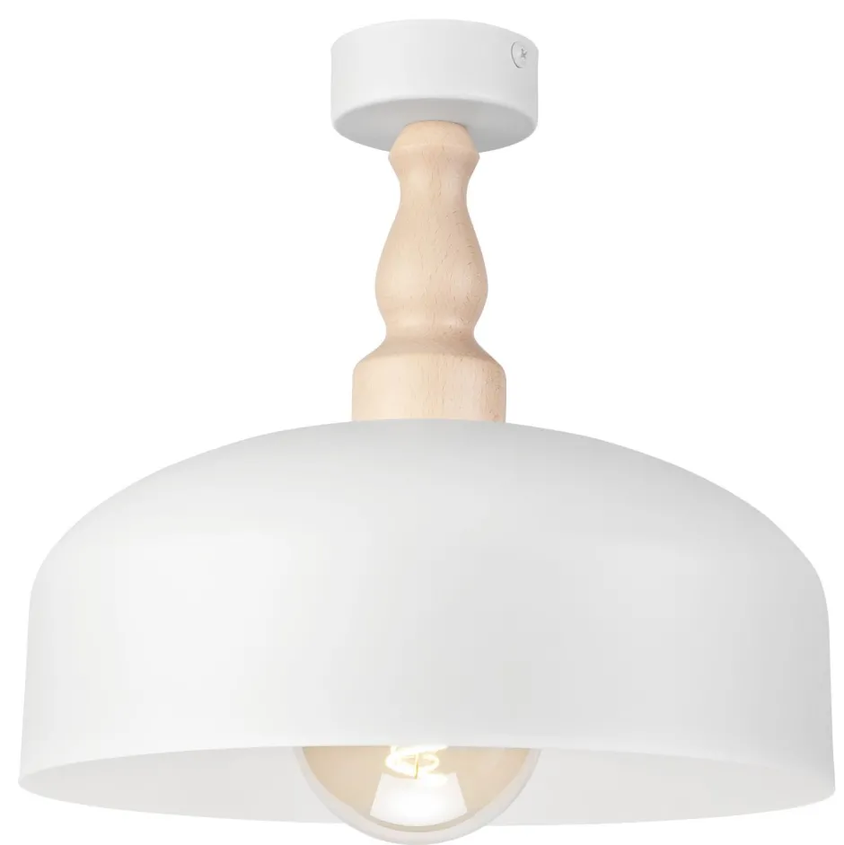 Kleine Deckenleuchte aus Metall und Holz in Weiß