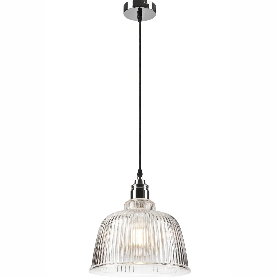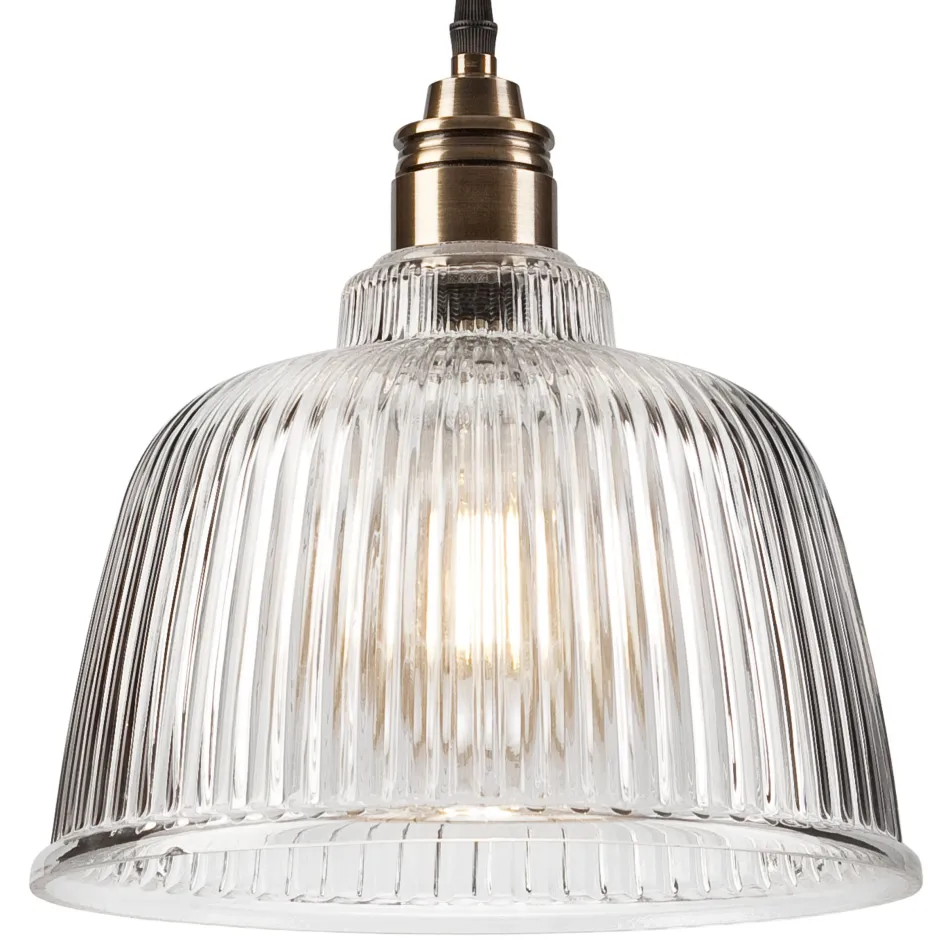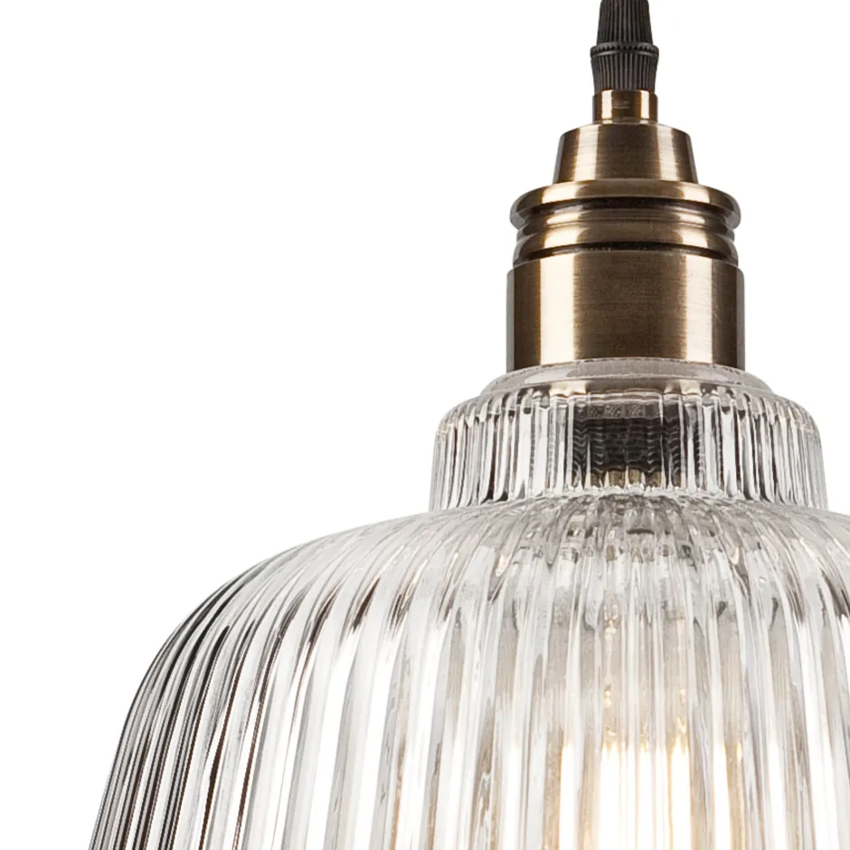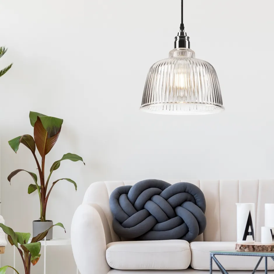 Stilvolle Pendelleuchte mit Lampenschirm aus Riffelglas