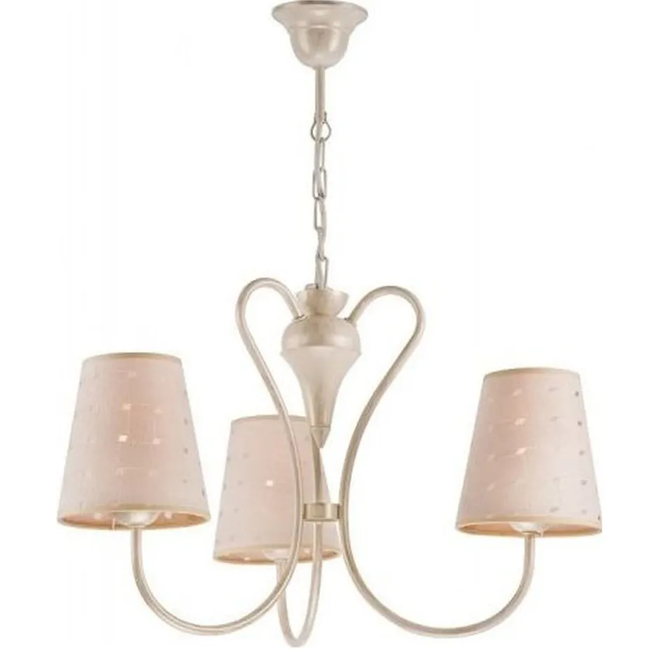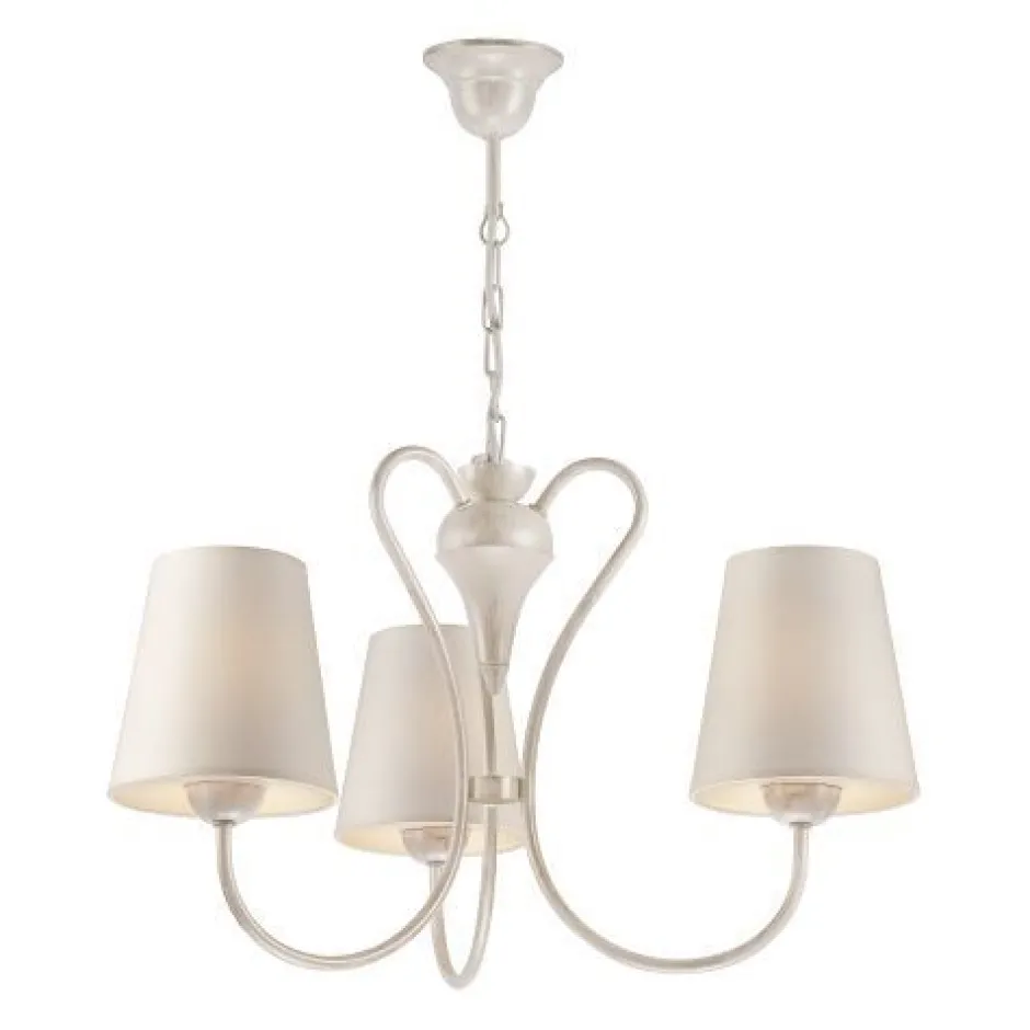 Stilvoller Kronleuchter in Weiß und Creme mit Stoff Schirm