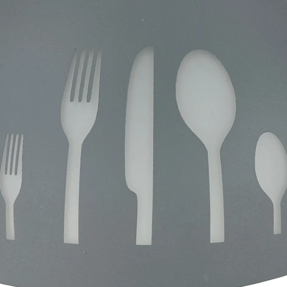Ein witziges Besteck-Motiv ziert den Schirm und verleiht der Pendelleuchte ein dekoratives Flair