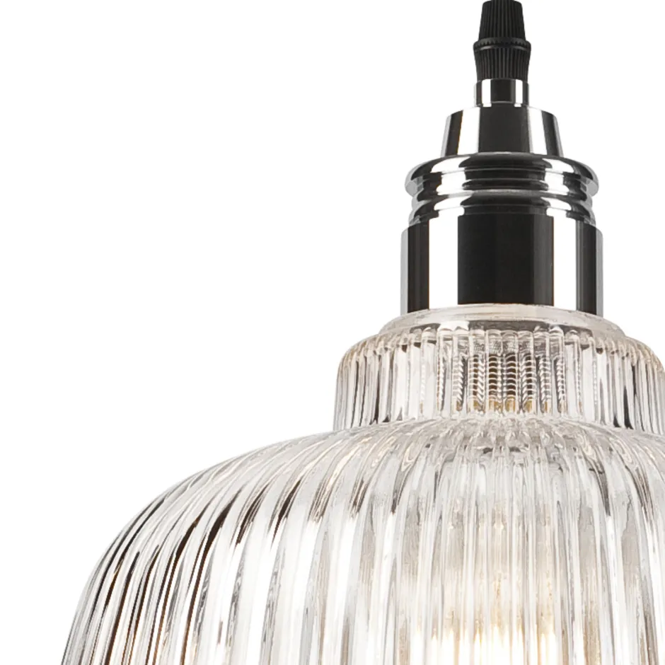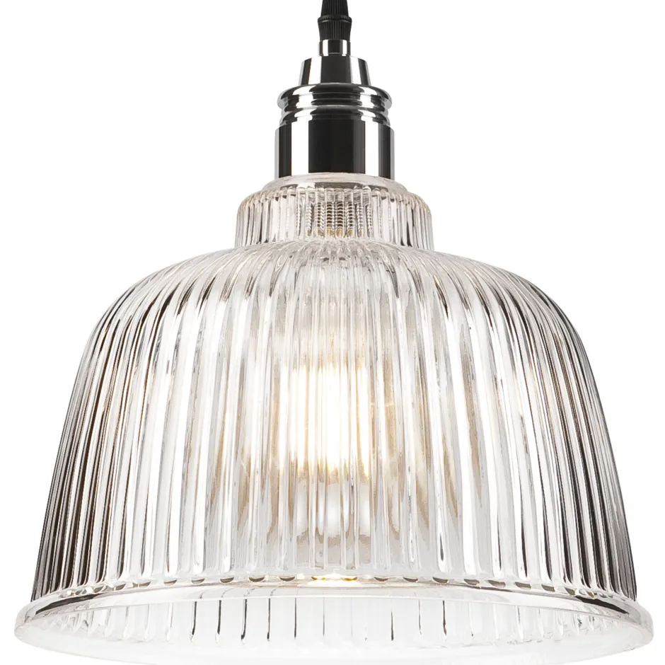 Stilvolle Pendelleuchte mit Lampenschirm aus Riffelglas