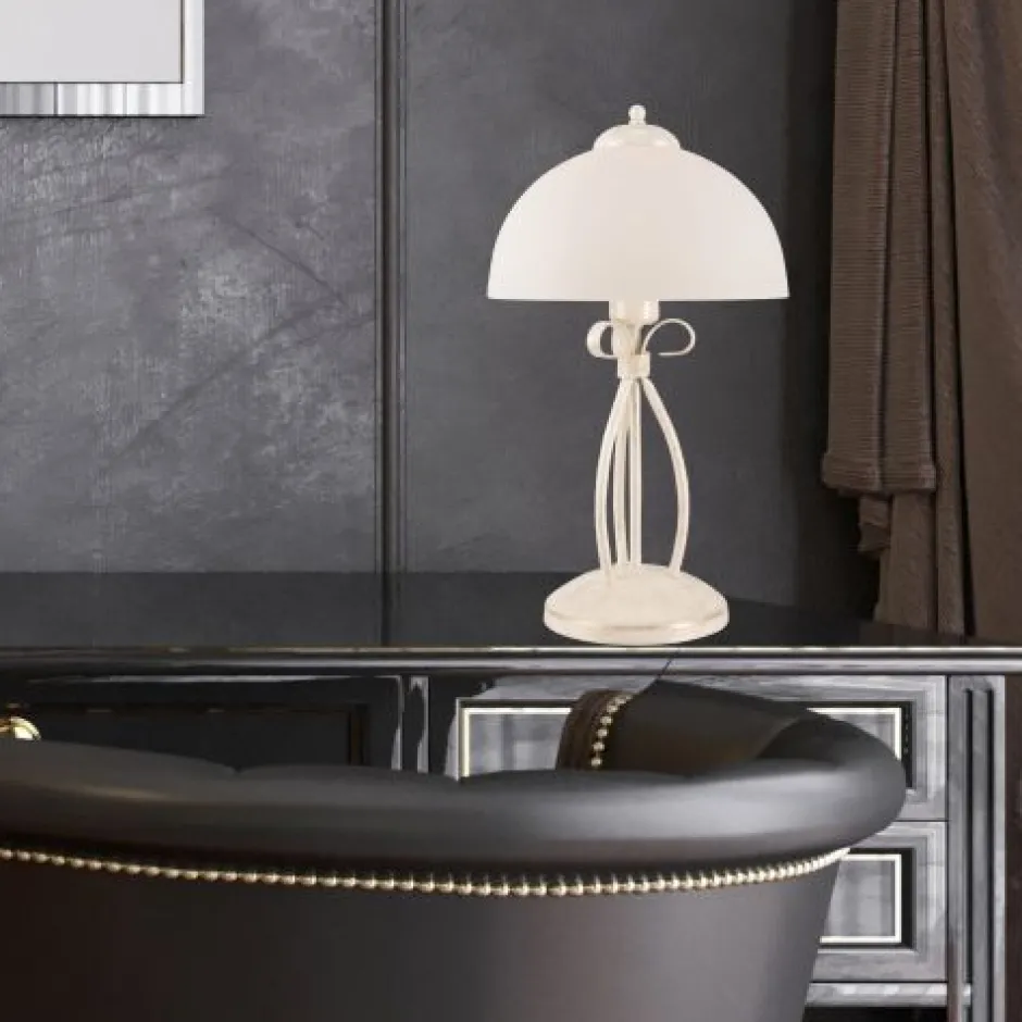 Der Glas Schirm streut das Licht blendarm – ideal im Schlafzimmer als Nachttischlampe oder im Wohnzimmer und Büro auf dem Beistelltisch