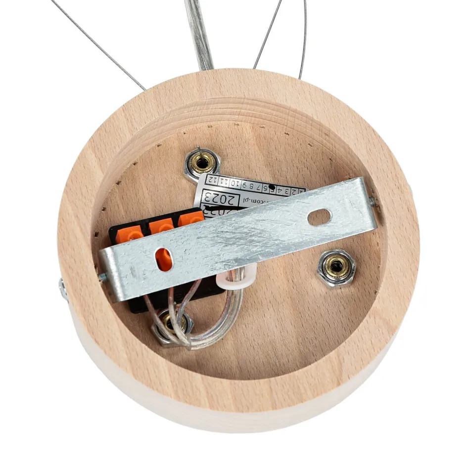 Runde Pendelleuchte aus Holz und Glas