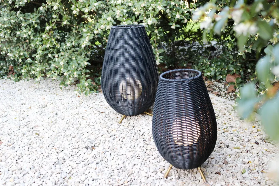 Moderne LED Akku Tischleuchte für außen in Schwarz