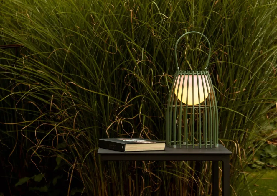Moderne LED Akku Tischleuchte in Grün für Balkon und Terrasse