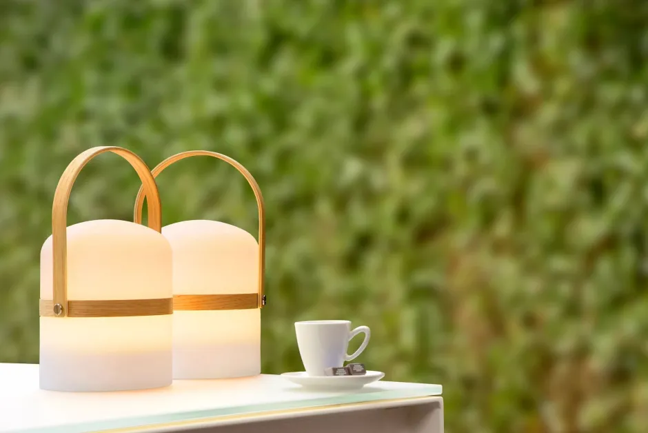 Tragbare LED Akku Tischlampe für Balkon und Terrasse