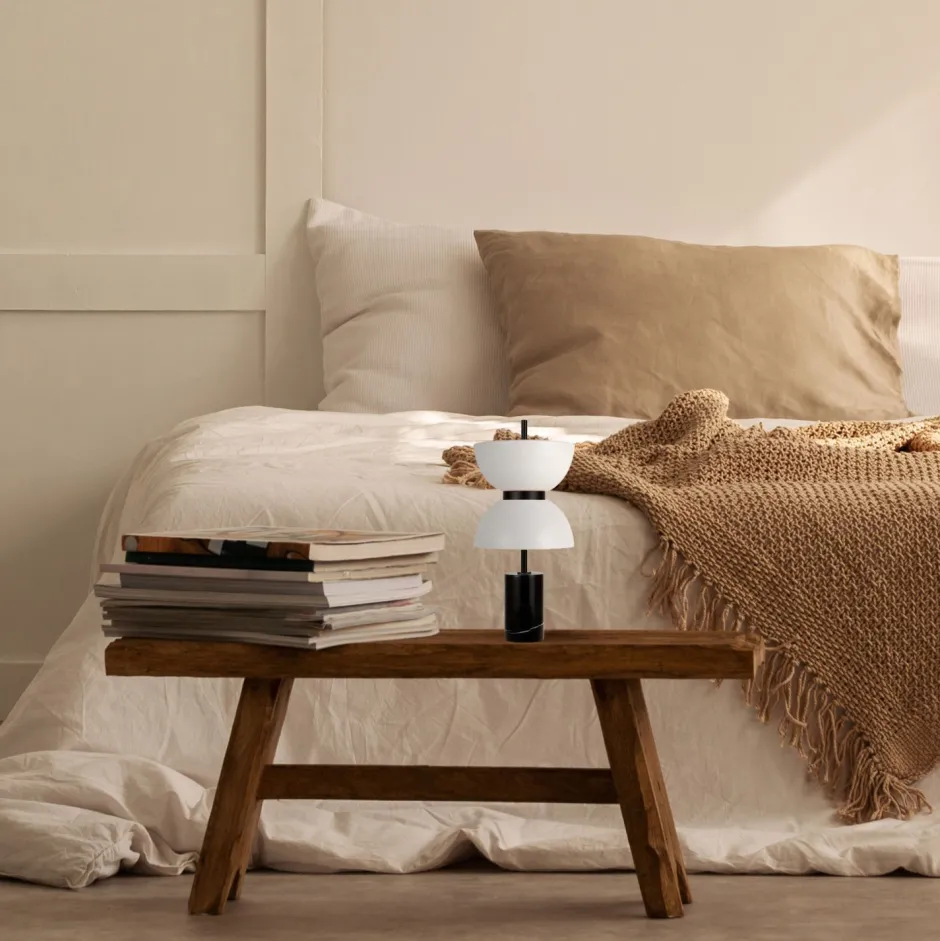 Das Licht der Tischlampe wird blendarm gestreut und sorgt für eine angenehme Beleuchtung – ideal als Nachttischlampe oder als Ambientebeleuchtung auf dem Sideboard oder dem Konsolentisch