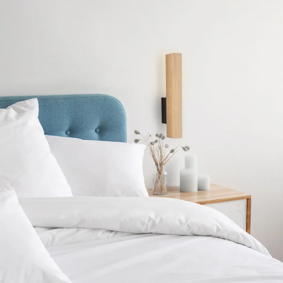 Schmale LED Wandleuchte aus Holz