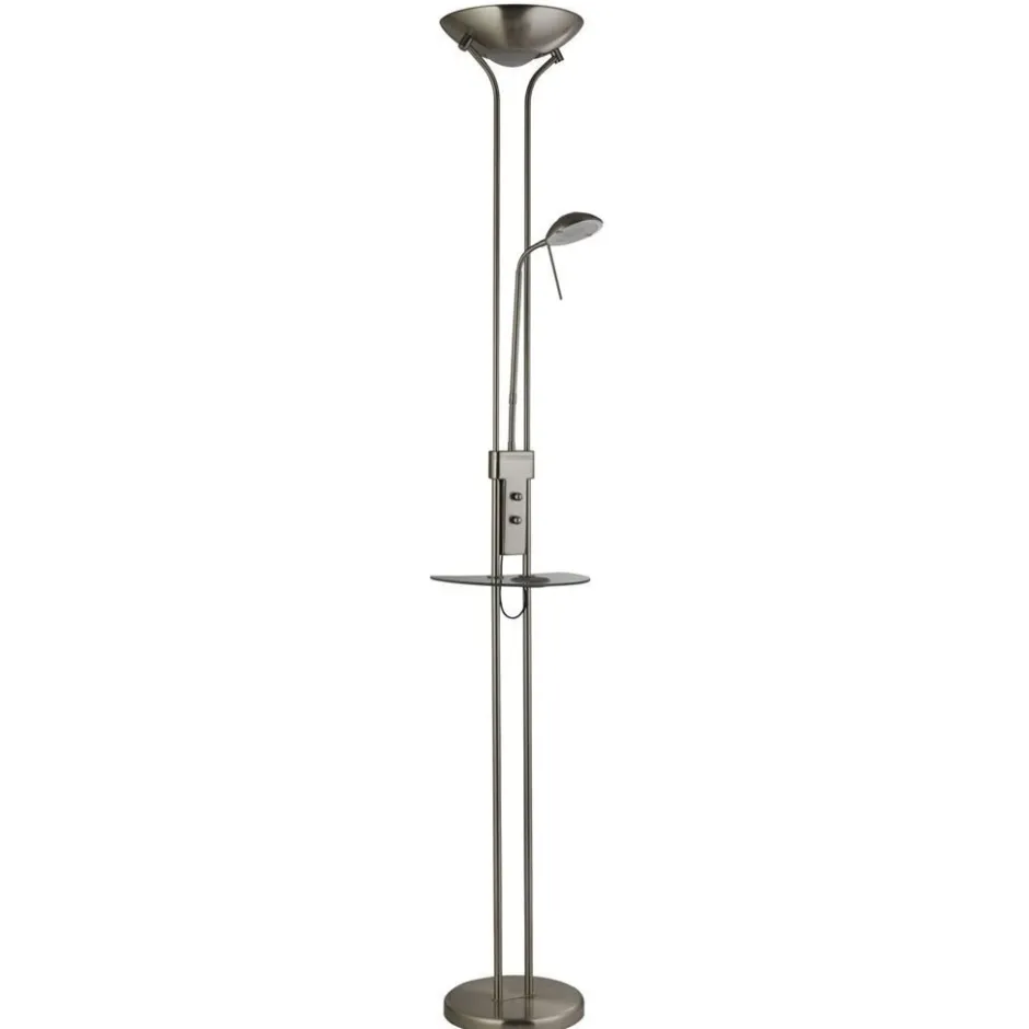 Dimmbarer LED Deckenfluter mit Lesearm und USB-Ladestation für das Wohnzimmer