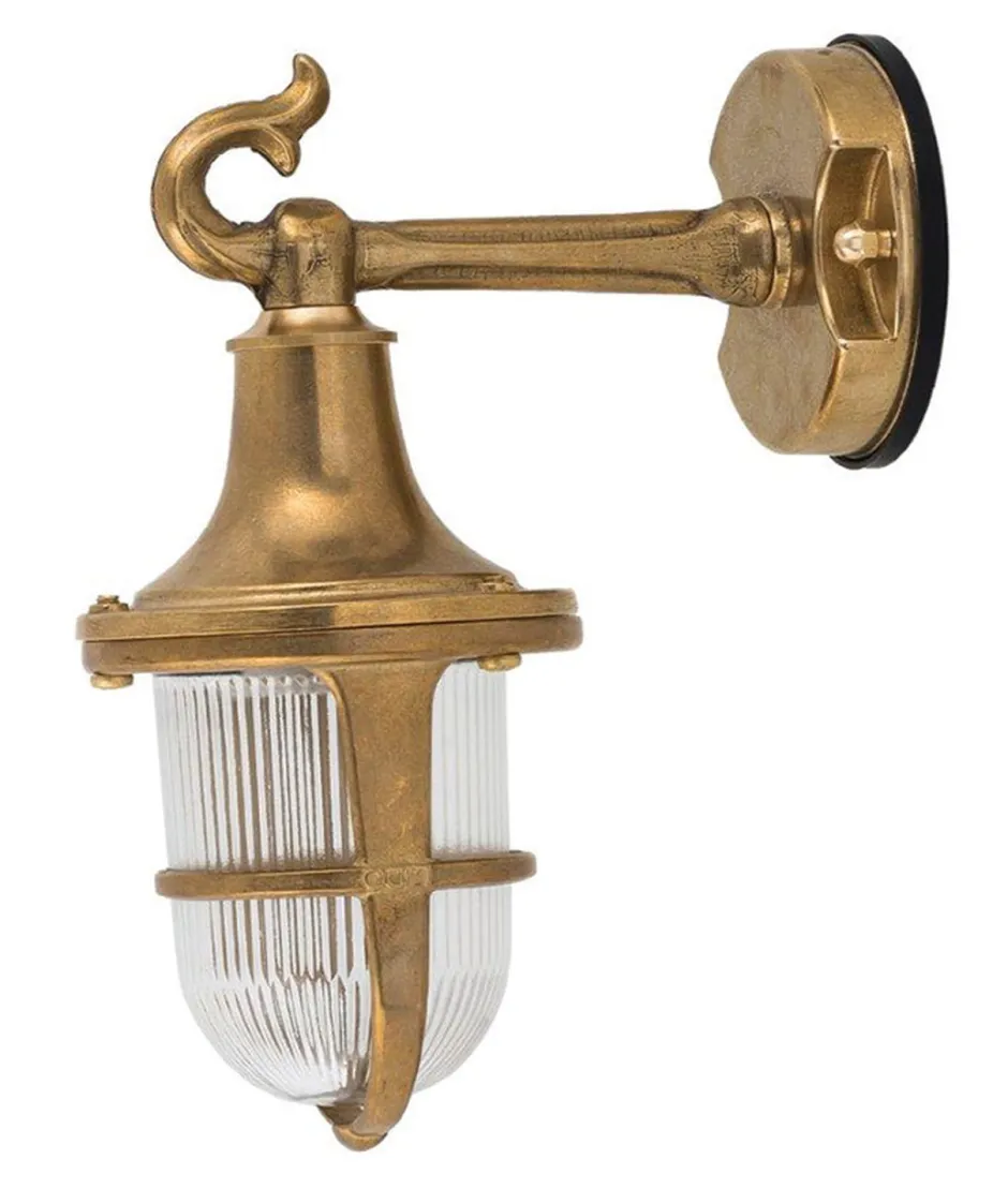 Rustikale Außenwandleuchte aus massivem Messing und Glas