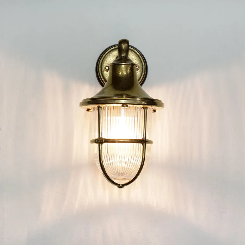 Rustikale Außenwandleuchte aus massivem Messing und Glas