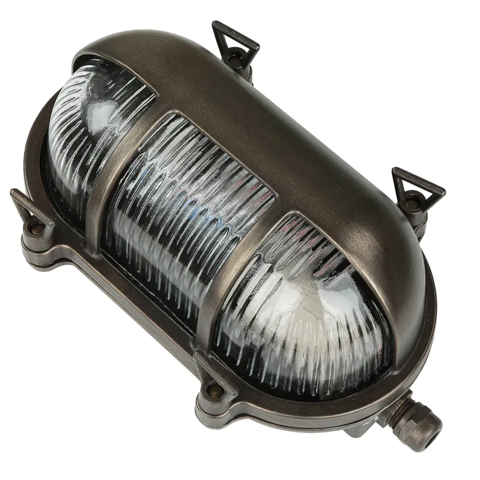 Maritime Außenwandlampe aus massivem Messing im Stil eines antiken Bullauges