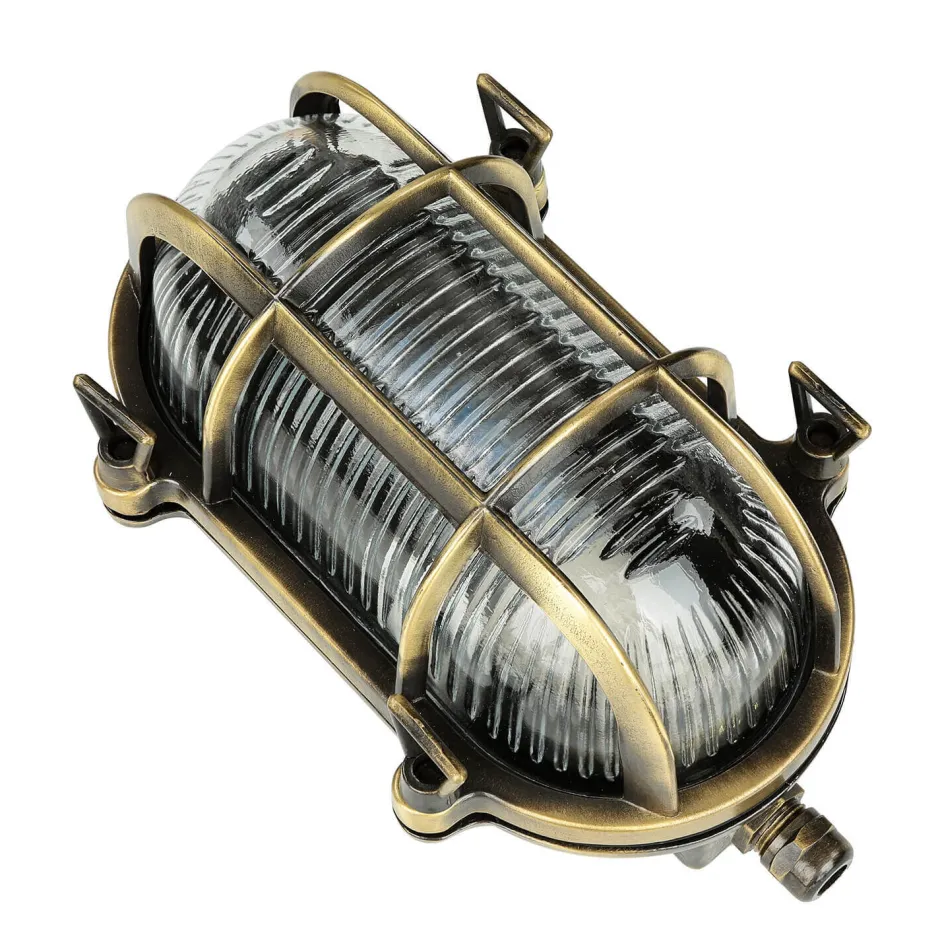 Die ideale Leuchte für Regionen mit hoher Luftfeuchtigkeit: Messing ist absolut rostfrei und der Schirm hat eine zusätzliche Dichtung, sodass das Leuchtmittel besonders geschützt ist